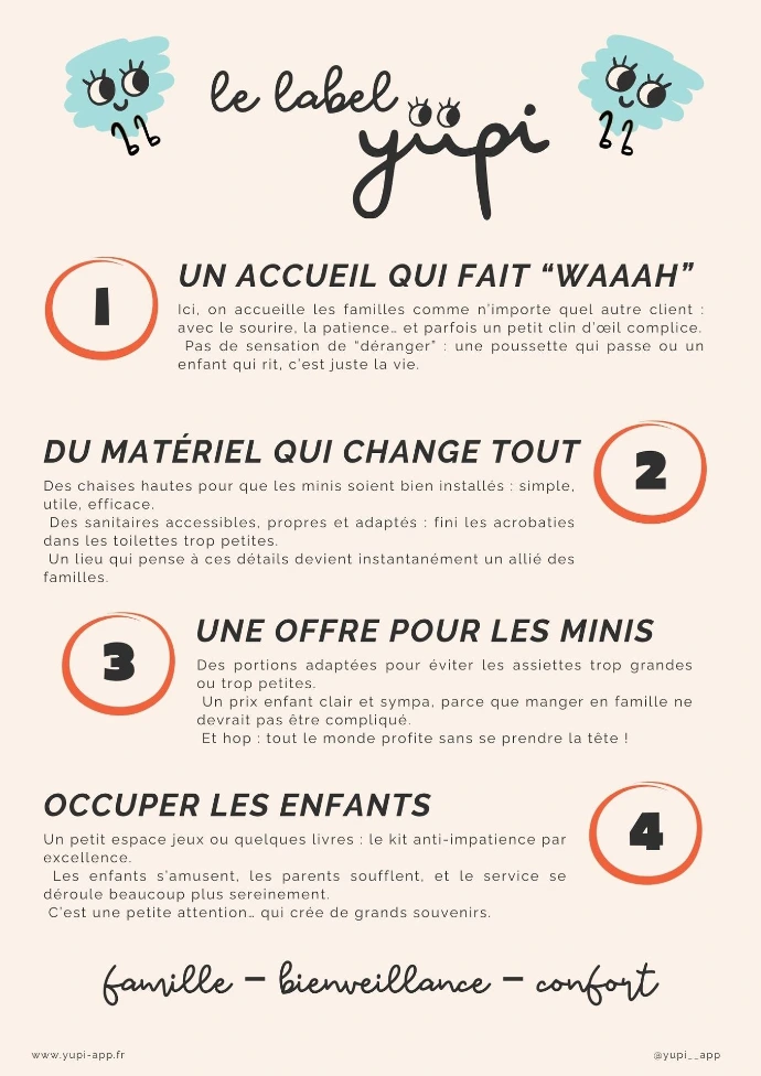 On a donc créé le Label Yupi, un repère officiel que les établissements peuvent afficher pour signaler aux familles :